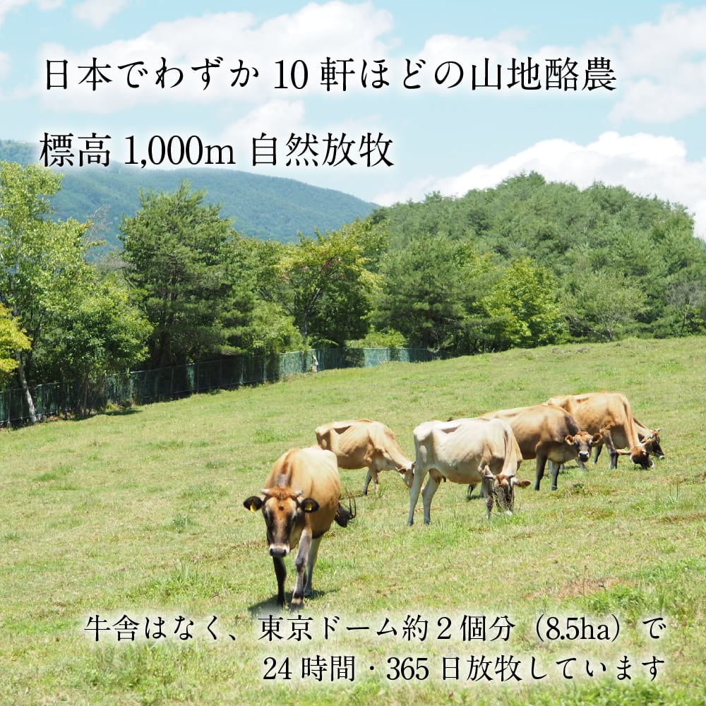 国内では約0.8%しかいない希少なジャージー牛を、国内でも10軒ほどしかいない、山で牛を放牧する『山地(やまち)酪農』で通年昼夜放牧しています。ストレスの少ない環境で、自然に生える草を食べて育つ牛たちからの恵みを贅沢に使い、乳化剤・安定剤などの添加物は一切不使用。さらに卵不使用なのでアレルギーの方でも安心してお召し上がりいただけます。