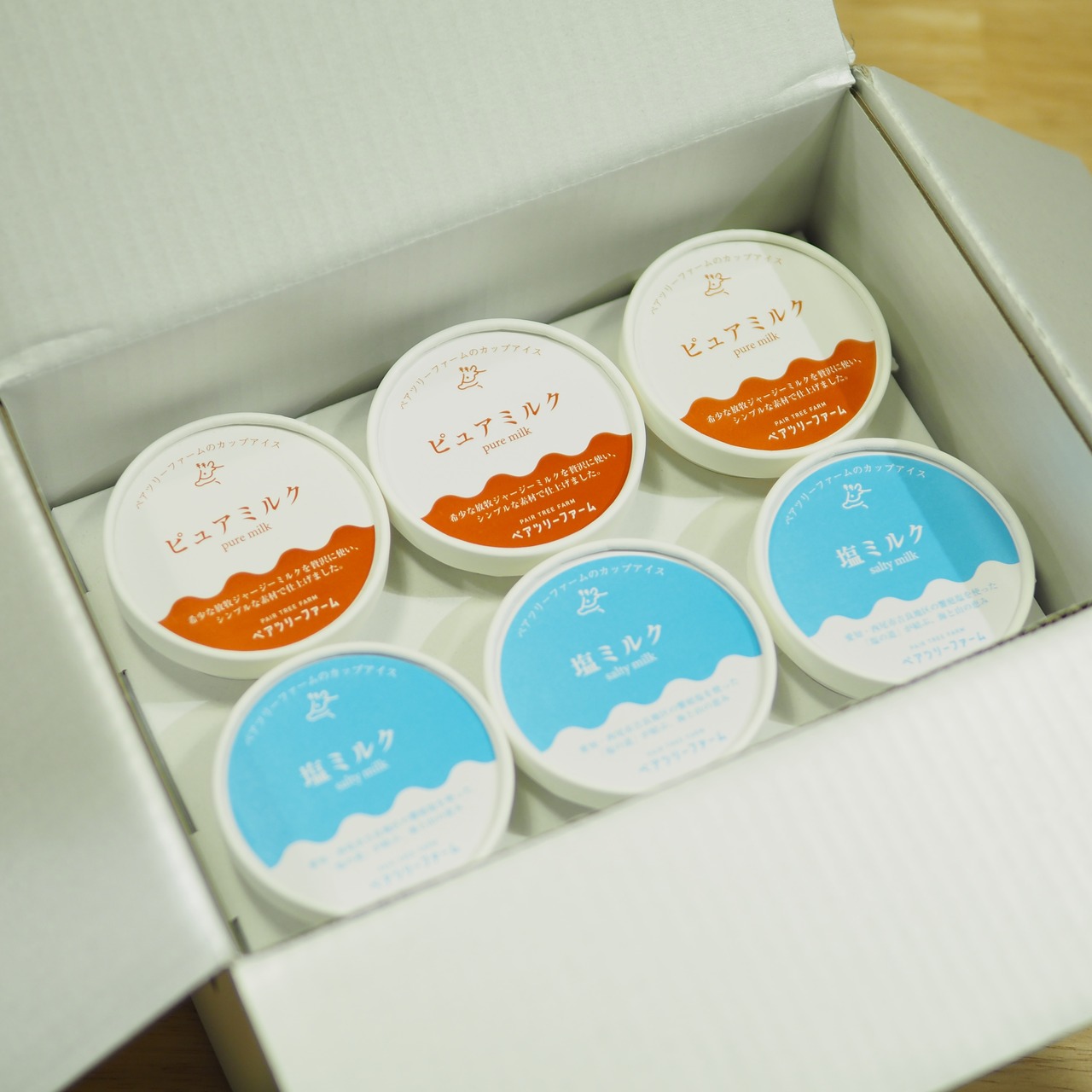 こちらはピュアミルク・塩ミルク各3個の計6個セットで発送いたします。