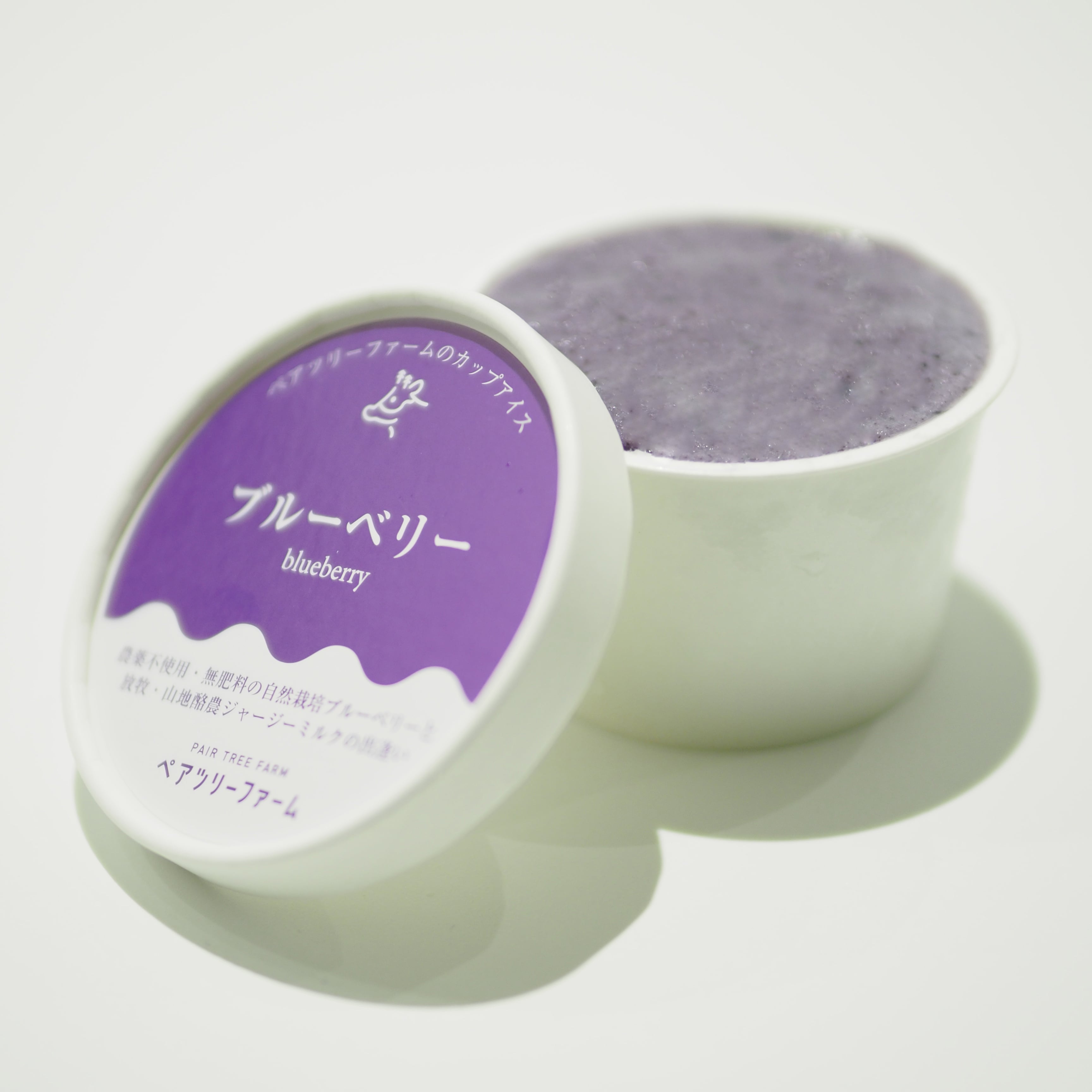 ブルーベリーアイスのブルーベリーは愛知県豊田市『みどりの里』の自然栽培ブルーベリーを使用。農薬不使用・肥料無施肥の甘みの強いブルーベリーです。